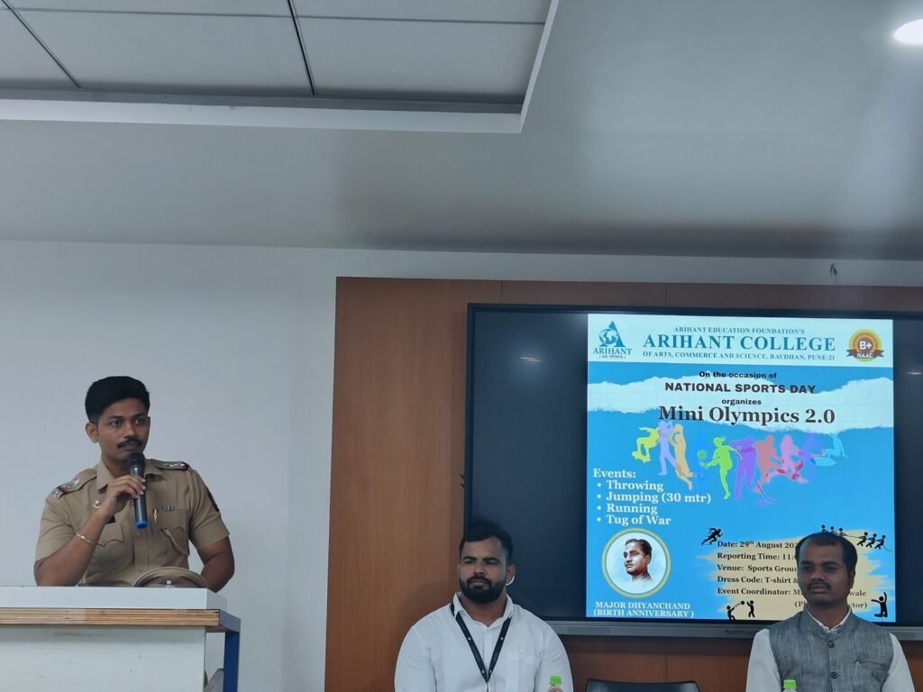 On the occasion of National Sports Day, Arihant College of Arts, Commerce and Science organized Mini Olympics 2.0 with great enthusiasm. The event was inaugurated by PSI Akshay Jadhav, who also addressed the students on the significance of sports in building discipline, teamwork, and overall personality. The program encouraged active participation from students and highlighted […]